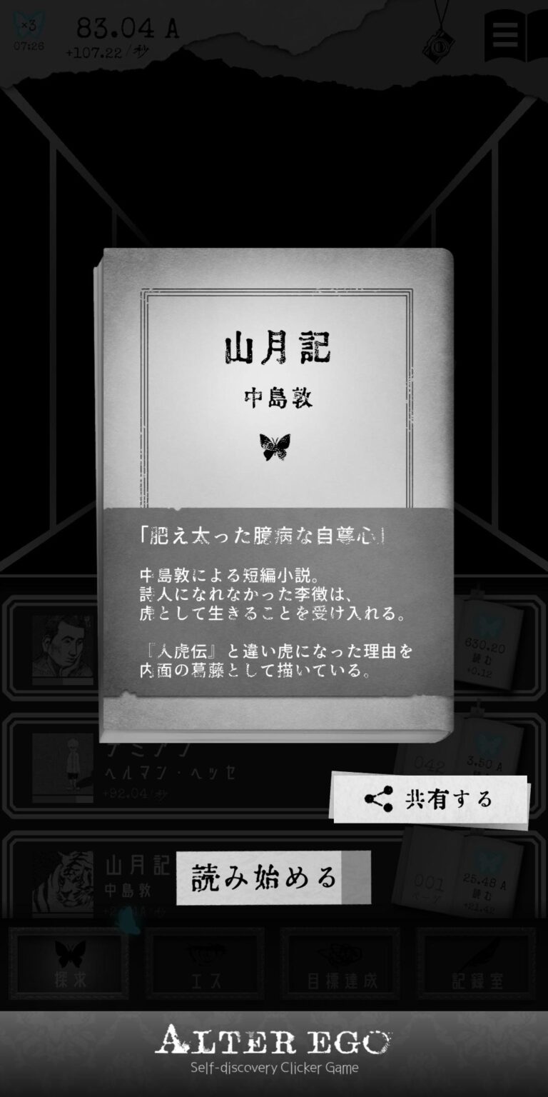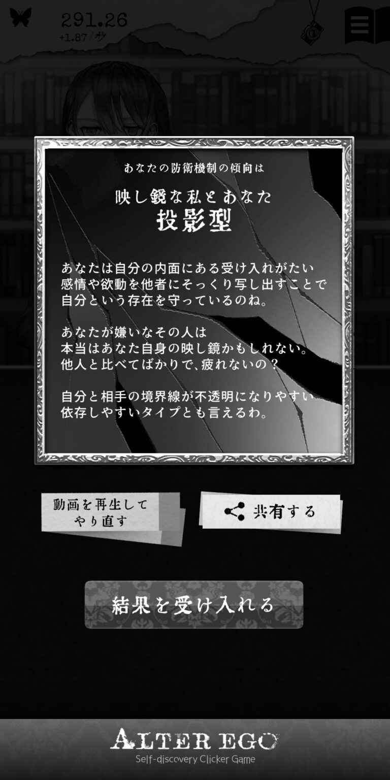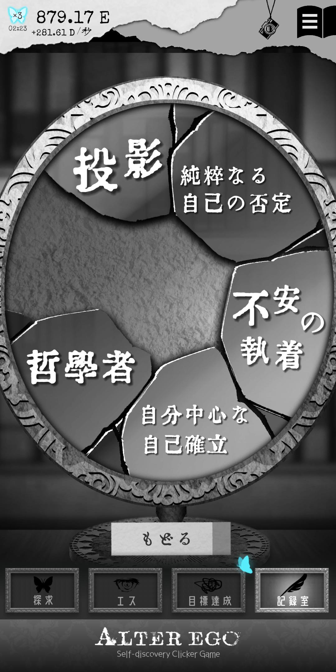 『ALTER EGO』は、自分探しをテーマにした心理学的要素を取り入れたタップゲームで、謎の少女「エス」との対話を通じて自己分析を進める。シンプルな操作で物語が分岐し、感情や思考を深掘りできる。