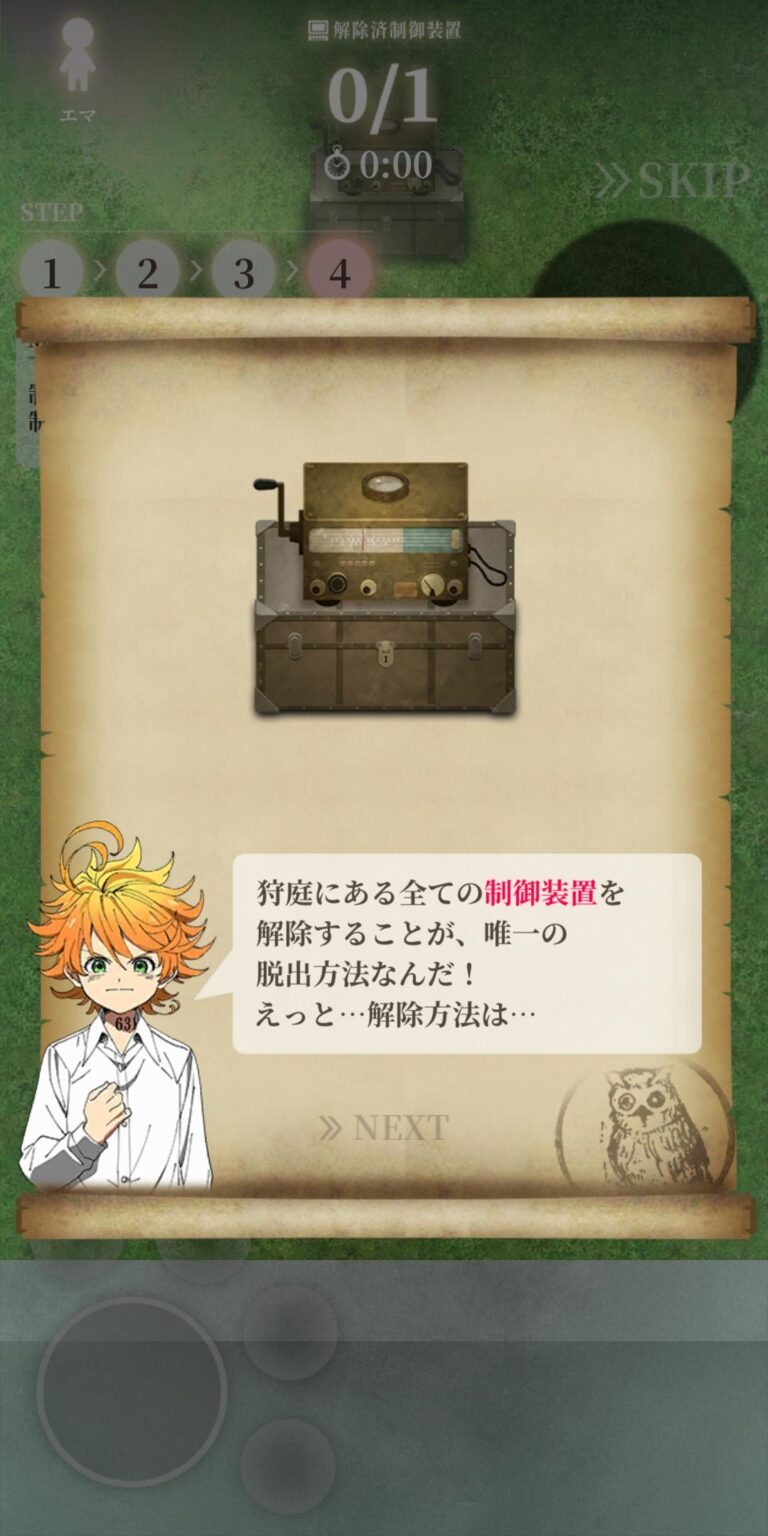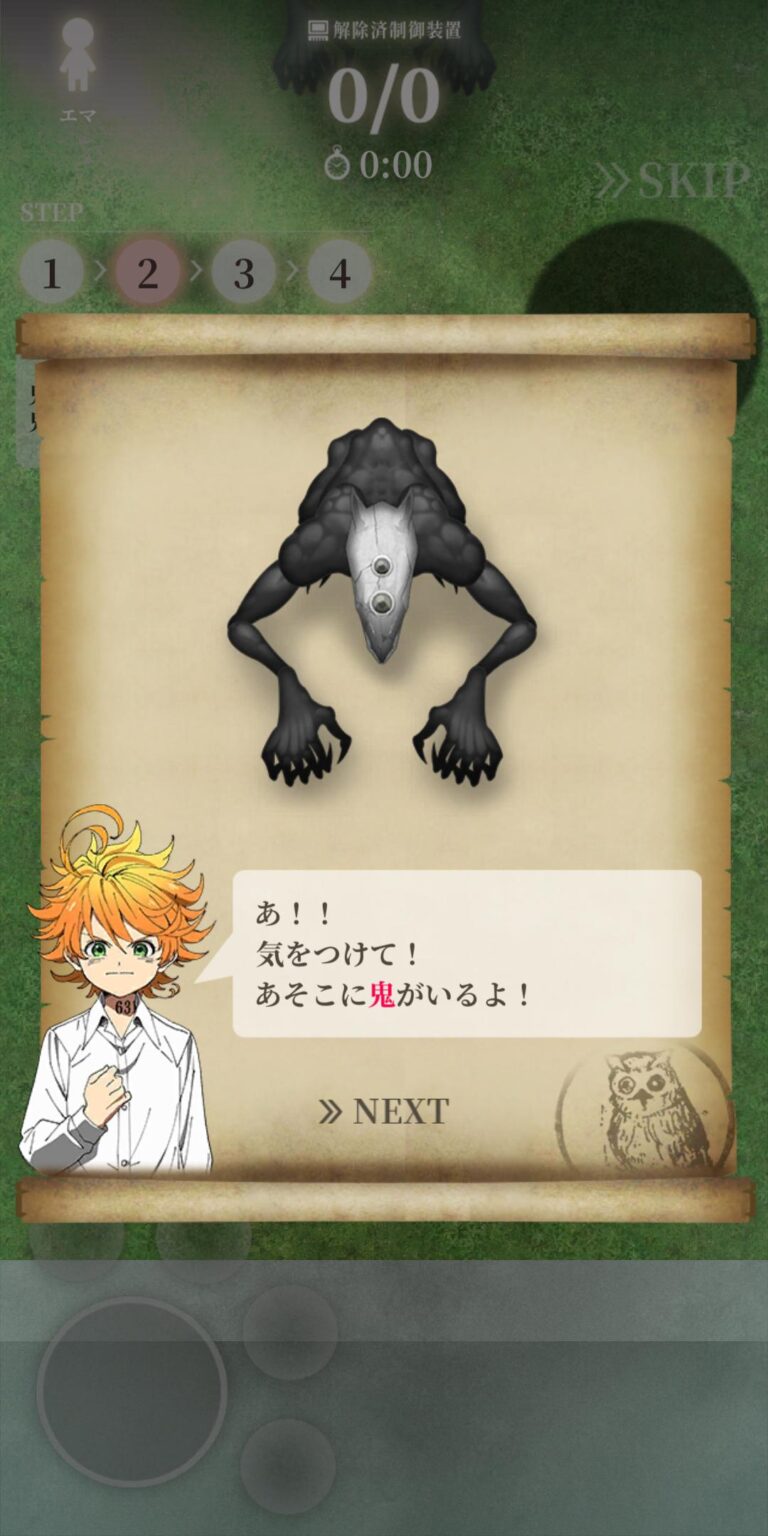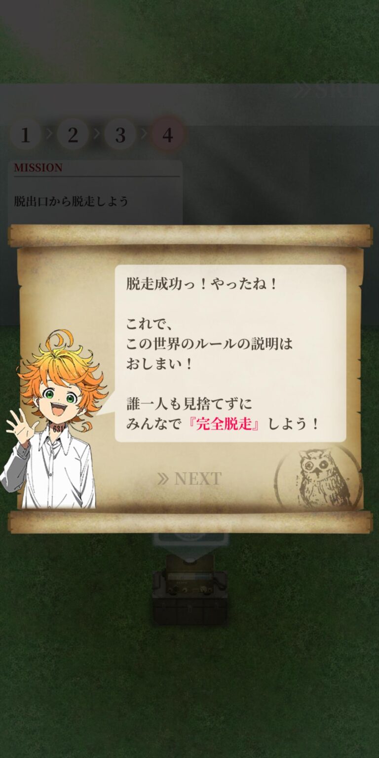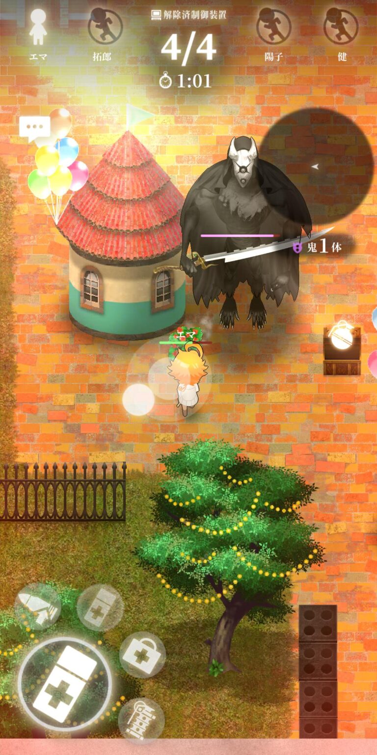 『約束のネバーランド~狩庭からの脱走~』は、人気漫画原作の脱出ゲーム。プレイヤーはエマたちと協力し、鬼の支配する「狩庭」から脱出を目指す。キャラクター育成や協力プレイ要素が魅力。